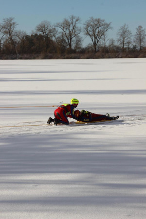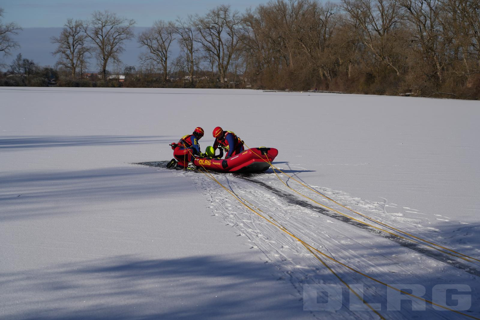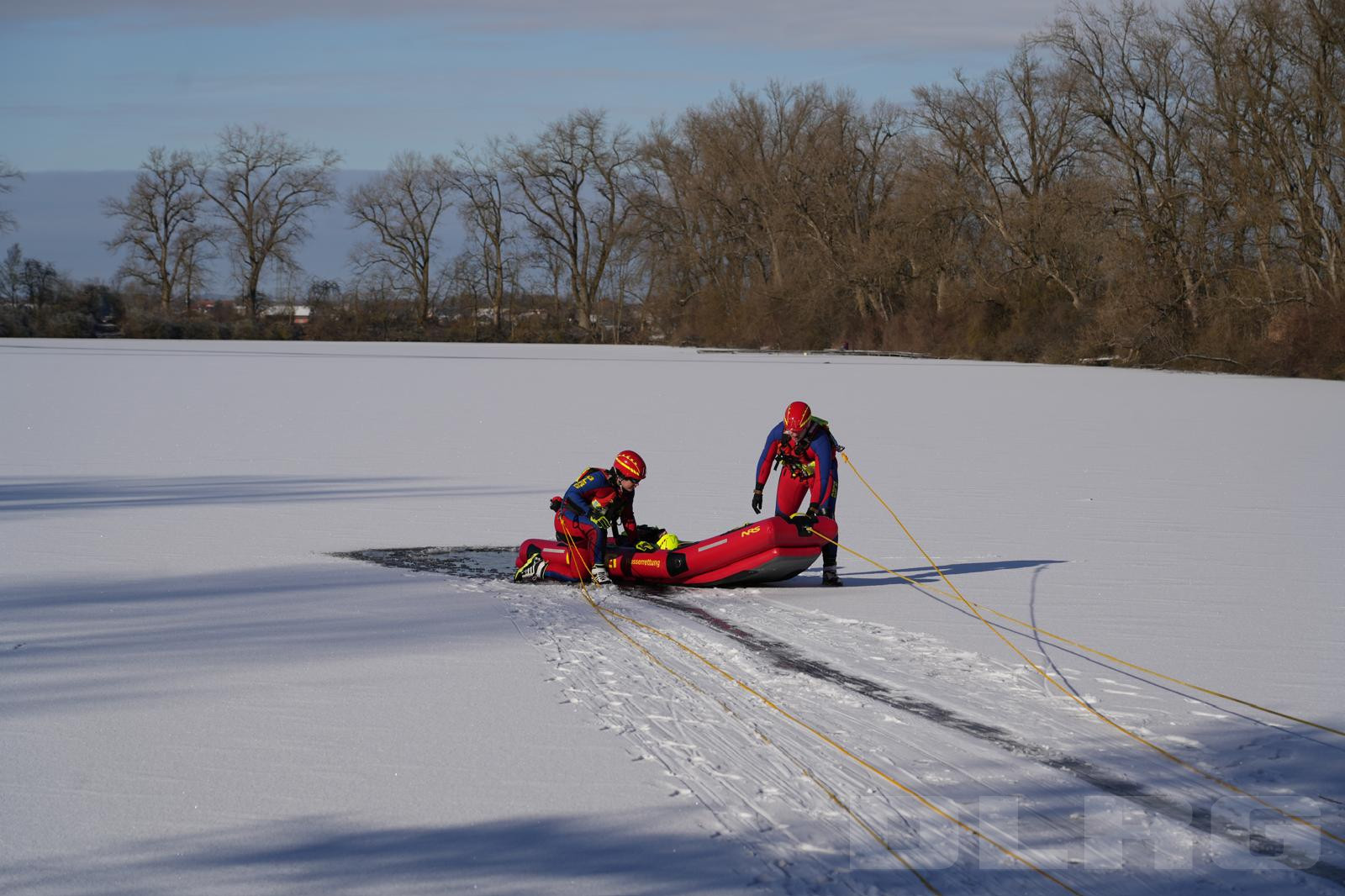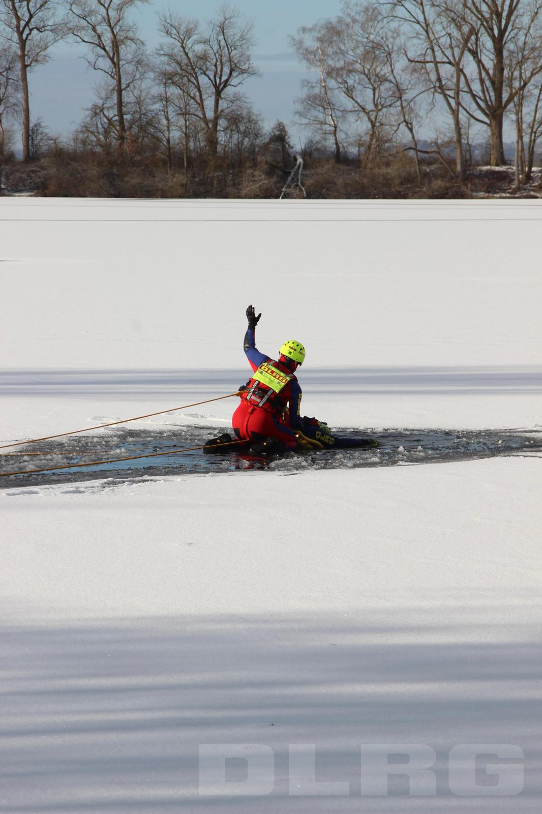 Die DLRG Wartenberg hat das Jahr 2025 mit dem traditionellen Silvestertauchen abgeschlossen. Da der Thenner See komplett mit Eis bedeckt war, beschlossen unsere Wasserretter eine kleine Eisrettungsübung zusammen mit unseren Kameraden von der DLRG Taufkirchen/Vils zu machen. Dabei wurden zur Rettung einer ins Eis eingebrochenen Person zwei Rettungsgeräte geübt.